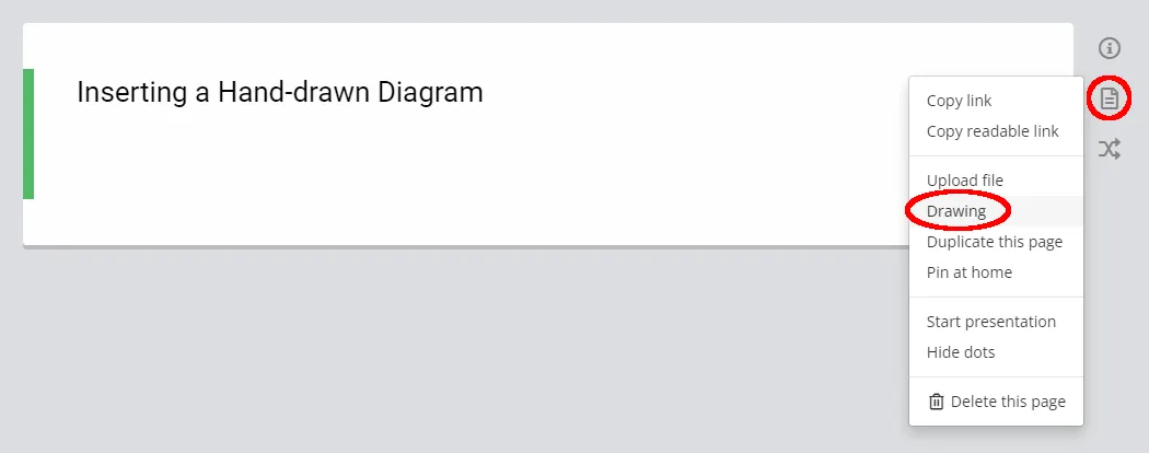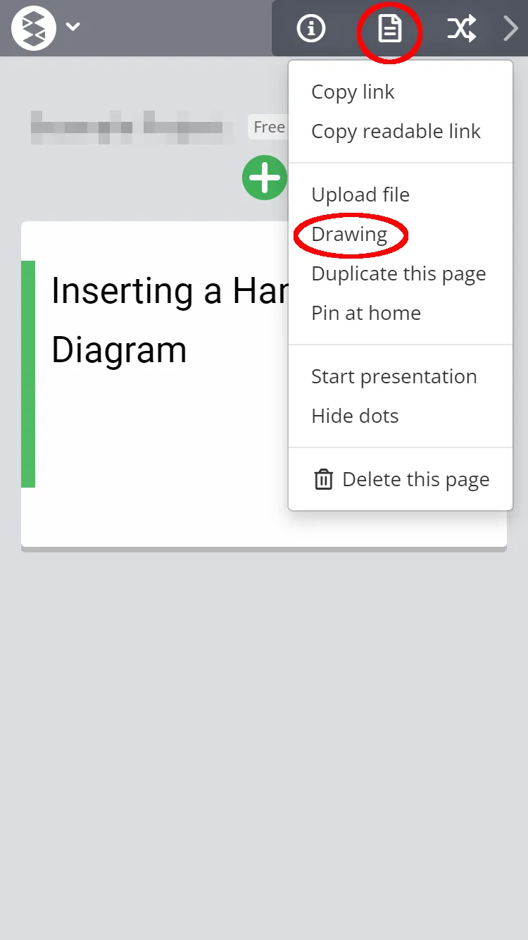 If you are using the mobile version, click on the icon in the upper right corner, select “drawing” (red circle in the image) to perform the same operation.
