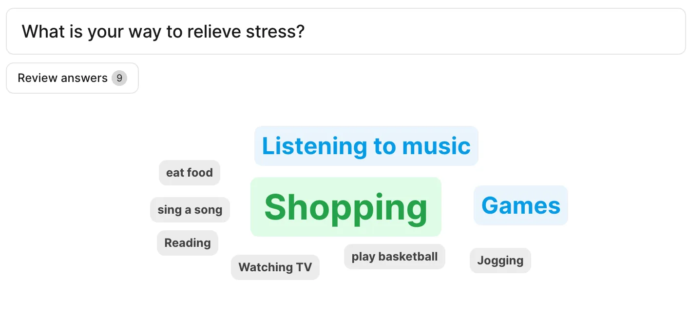 • The answers will be displayed in format as shown in the figure. If there are multiple identical answers, the word will be displayed larger. (On students’ screen)