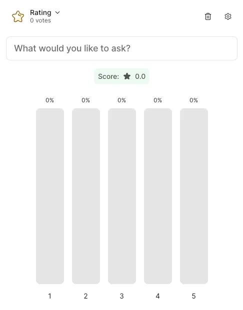 • Survey - Create a survey combining multiple questions (unlike the above 6 types, participants answer multiple questions collectively as one set).