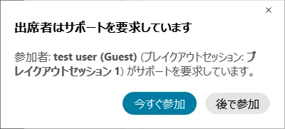 • メインミーティングにいるときにブレイクアウトセッションからヘルプが要求されると,ウィンドウがポップアップ表示され,そのセッションに参加することができます.